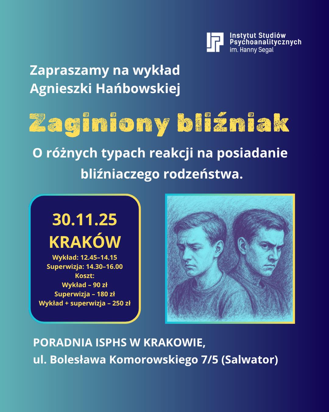 Instytut Studiów Psychoanalitycznych im. Hanny Segal zaprasza na wykład…